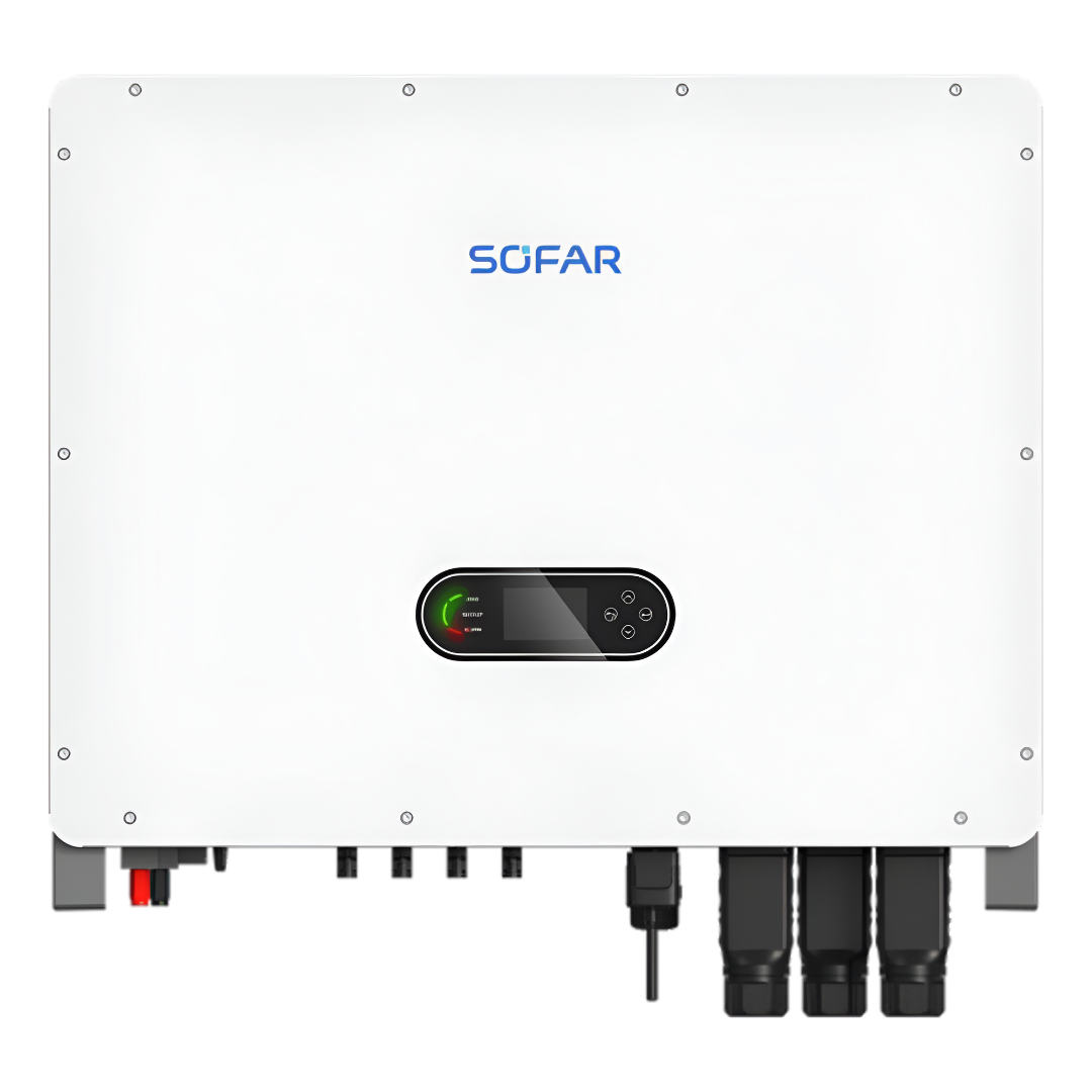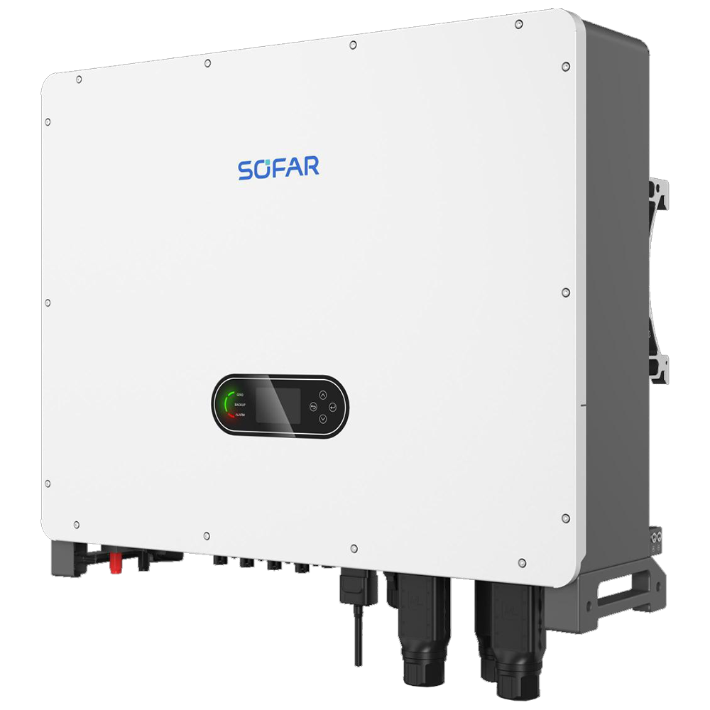 SOFAR HYD 40-60K-T1 este o serie de invertoare hibride trifazate de putere medie, proiectată pentru aplicații C&I care necesită integrare eficientă a energiei solare, stocare flexibilă și funcții de backup rapide și fiabile.