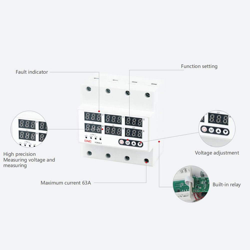 Releu de protecție a dispozitivelor electrice conectate la rețeaua 230/400VAC împotriva șocurilor din rețea, precum nivelul mărit sau scăzut al tensiunii, dezechilibrului pe faze sau supracurentilor. Tensiunea din rețea este monitorizată încontinuu, în caz de devieri de tensiune în afara limitelor setate, releul întrerupe imediat alimentarea echipamentelor conectate. După restabilirea valorilor normale de tensiune, releul va recupla. În același timp alimentarea cu curent va fi întreruptă imediat ce valoarea curentului va depăși limita admisă setată. În acest mod, releul monitorizare tensiune și curent YC9VA-3 oferă o siguranță complexă pentru toate echipamentele conectate: utilaje trizafate, fire, prize, generatoare sau elemente de stocare și distribuție a curentului. O soluție accesibilă și eficientă pentru o companie, hotel, magazin, dar și pentru orice familie, indiferent dacă vorbim de casă sau apartament. Pentru montare în panourile de distribuție, ocupă 5 module.